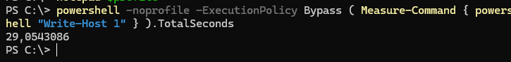 powershell -noprofile -ExecutionPolicy Bypass ( Measure-Command { powershell "Write-Host 1" } ).TotalSeconds