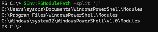 C:Users%username%DocumentsWindowsPowerShellModules C:Program FilesWindowsPowerShellModules C:Windowssystem32WindowsPowerShellv1.0Modules