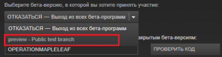 6) Выбираем «Public test branch».