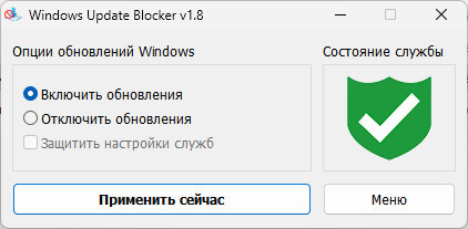 - В окне Windows Update Blocker снова выберите опции «Отключить обновления» и «Защитить настройки служб».