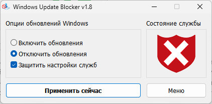 | Отключить обновления | Полностью блокирует загрузку и установку обновлений Windows |