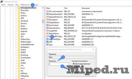2) Заходим в ветку по адресу: «HKEY_LOCAL_MACHINESYSTEMCurrentControlSetServic esdmwappushsvc».