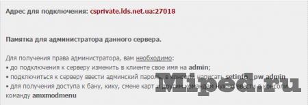 3) Получаем адрес нашего сервера, а так же информацию о том, как получить админ. права: