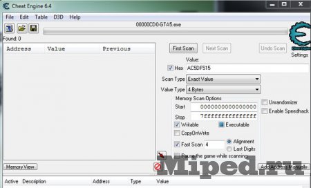1) Заходим в Cheat Engine, и заходим в Grand Theft Auto 5.