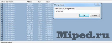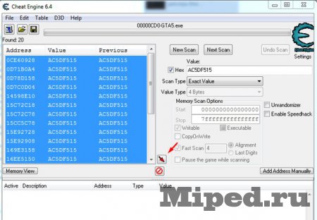 5) Нажимаем «First Scan» и видим что у нас нашлось в правом столбце программы, выделяем это всё просто зажав «Ctrl+A» и нажам на одно из значений, после этого нажимаем на красную стрелочку: