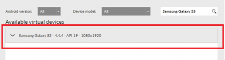 7) Ищем «Samsung Galaxy S5 – 4.4.4 – API 19 1080×1920».