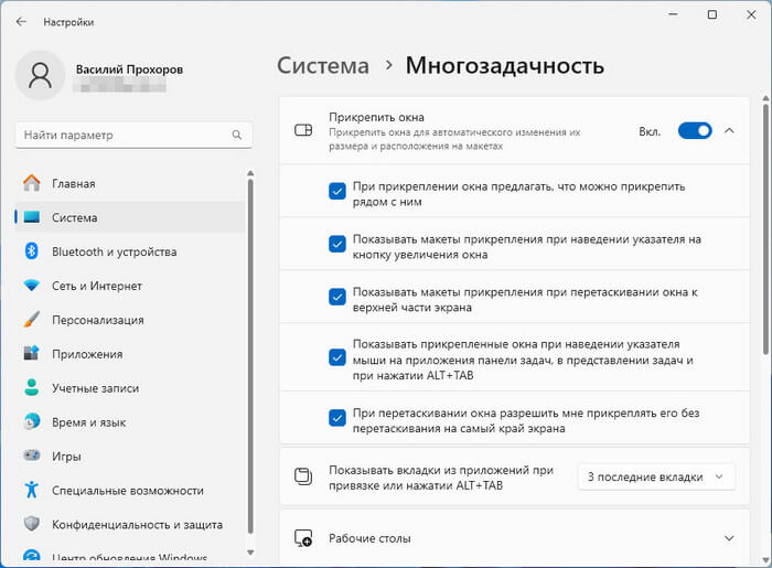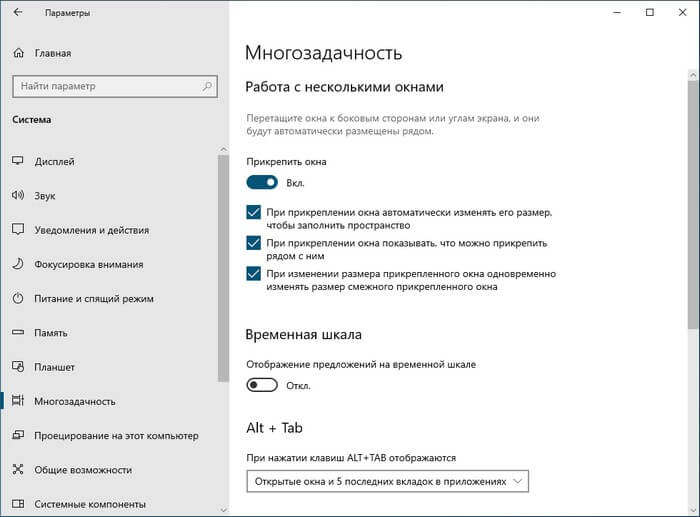 Прежде всего вам необходимо убедиться, что в настройках многозадачности операционной системы включена функция прикрепления окон к сторонам или углам экрана. По умолчанию эти опции включены, но лучше проверить, особенно, если настройки Windows изменялись.