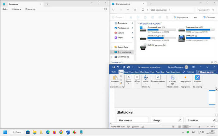 Во время работы на компьютере пользователи часто открывают на рабочем столе множество окон: браузер, файловый менеджер, мессенджер, текстовый редактор или таблица с данными — все это нужно держать под контролем одновременно. Между открытыми окнами нужно постоянно переключаться и это не удобно. Из этой ситуации есть выход: вы можете разделить экран на части в Windows.