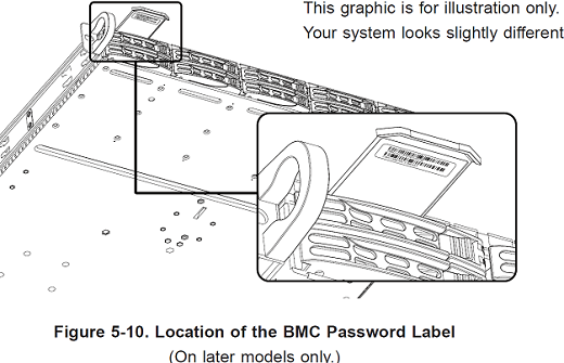 Как описано в документации к серверам, на корпусе должны быть две наклейки с логинами и паролями, которые задаются производителем BMC. В каждом сервере Supermicro они представлены на специальных табличках.