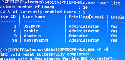 C:IPMICFGWindows64BitIPMICFG-Win.exe –user list