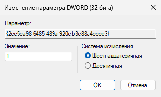 - В окне «Изменение параметра DWORD (32 бита)» в поле «Значение:» установите «1», а потом нажмите «ОК».