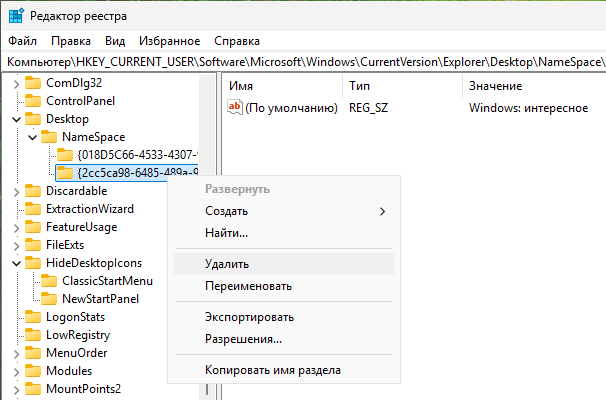 HKEY_CURRENT_USERSoftwareMicrosoftWindowsCurrentVersionExplorerDesktopNameSpace