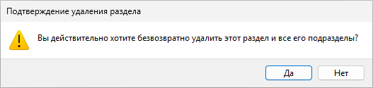 - В окне «Подтверждение удаления раздела» нажмите «Да».