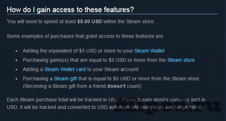 Так как же все таки снять ограничение? Есть три способа снятия этой неприятной штучки, и во всех Вам нужно тратить 5$. Итак, во-первых, Вы можете положить 5 баксов на свой аккаунт с помощью карты или же электронных кошельков. Во-вторых, Вы можете купить игру, стоимость которой равняется или больше пяти долларов. И так же Вы можете активировать карточку пополнения Steam.