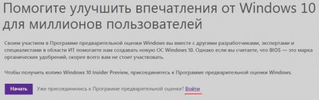 2) Войдите под своим аккаунтом в программе предварительной оценки операционной системы. (ссылка)
